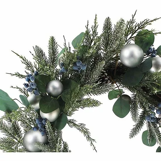 You can’t go wrong with this festive St. Nicholas Square Artificial Juniper Berry Ornament Christmas Wreath.
