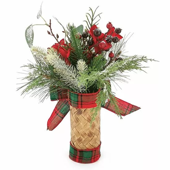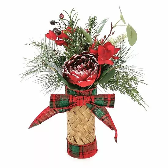 Spread cheer and happiness with this St. Nicholas Square Artificial Snow Red Floral Stack Table Decor.