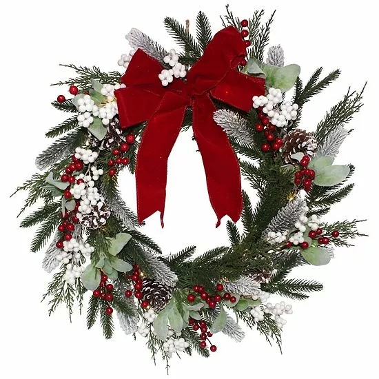 Spread cheer and happiness with this St. Nicholas Square Artificial White Red Berry Greenery Wreath.