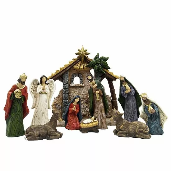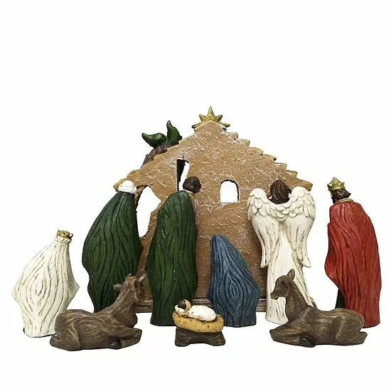 Add a festive look to your space with this lovely St. Nicholas Square® Carved Resin Nativity Scene.