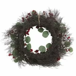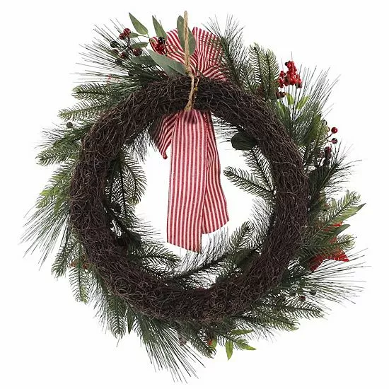 You can’t go wrong with this festive St. Nicholas Square Embroidered Stars Artificial Pine Holly Wreath.