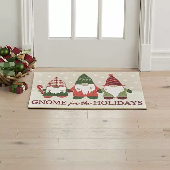 Create a festive feeling with this seasonally stylish St. Nicholas Square® Gnome for the Holidays 19.5” x 30” Accent Rug.