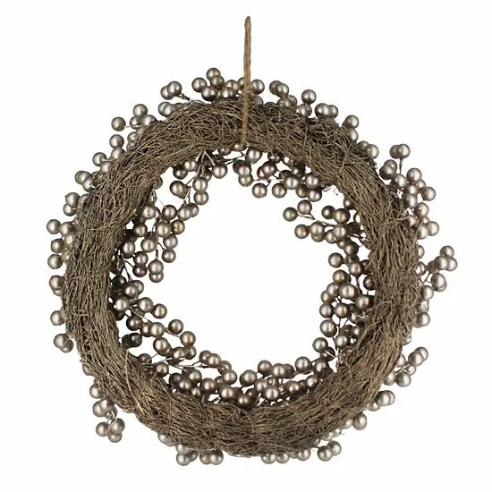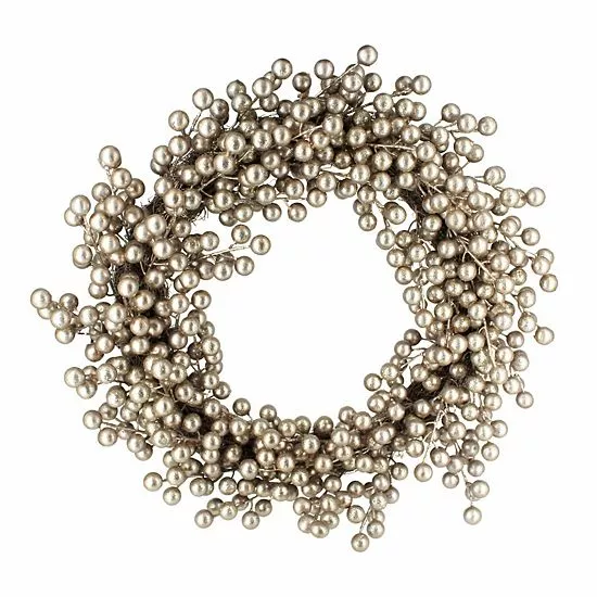 You can’t go wrong with this festive St. Nicholas Square Gold Finish Artificial Berry Wreath.