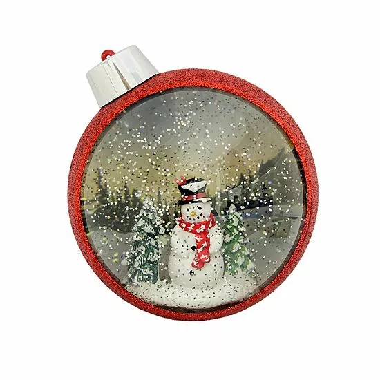Celebrate winter with this festive St. Nicholas Square LED Shimmer Snowman Ornament Spinning Water Table Decor.