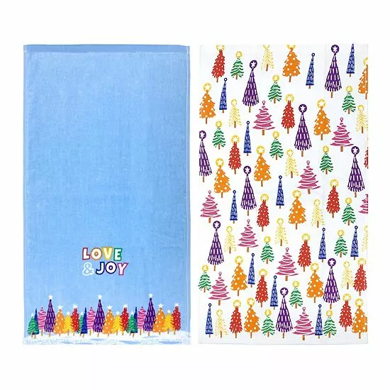 Deck the halls, or the kitchen, with these festive St. Nicholas Square Love And Joy Pride kitchen towels.