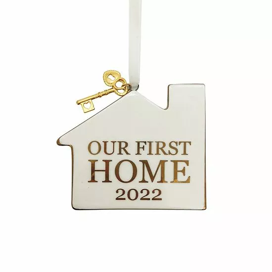 Add a festive look to your space with this lovely St. Nicholas Square® Our First Home Sentiment Disc.