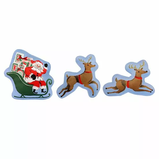 Create a festive feeling with this seasonally stylish St. Nicholas Square® Shaped Santa Reindeer 3-pack Throw Pillow Set.