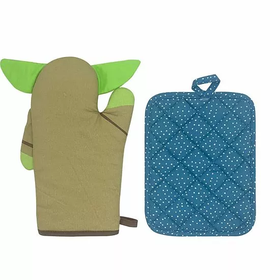 - Adorable The Child-shaped oven mitt and coordinating pot holder