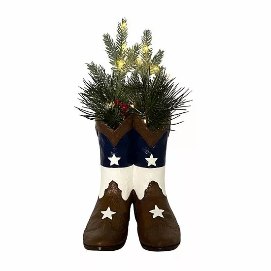 Make decorating a breeze with this St. Nicholas Square® Texas Botanical Cowboy Boot LED Table Decor.