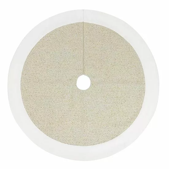 Create the perfect holiday ambiance with this St. Nicholas Square® White & Gold Tree Skirt.