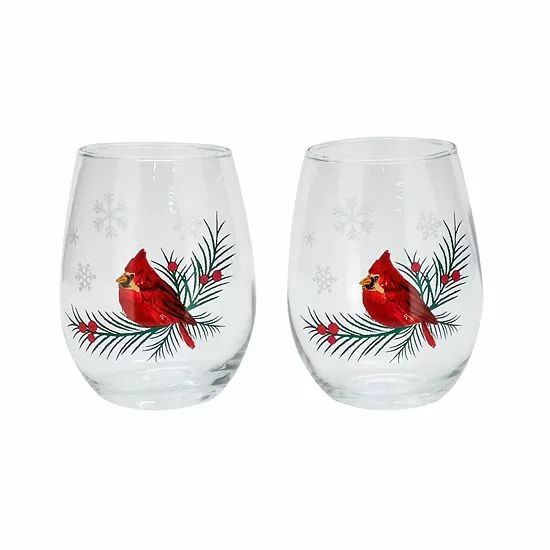 Get your home holiday ready with this St. Nicholas Square Yuletide Cardinal stemless wine set.